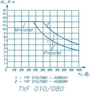 Зная значение необходимого Вам вращающего момента M2[Н·м] на выходном валу, мотор-вариатор подбирается по нижеприведенным механическим характеристикам: